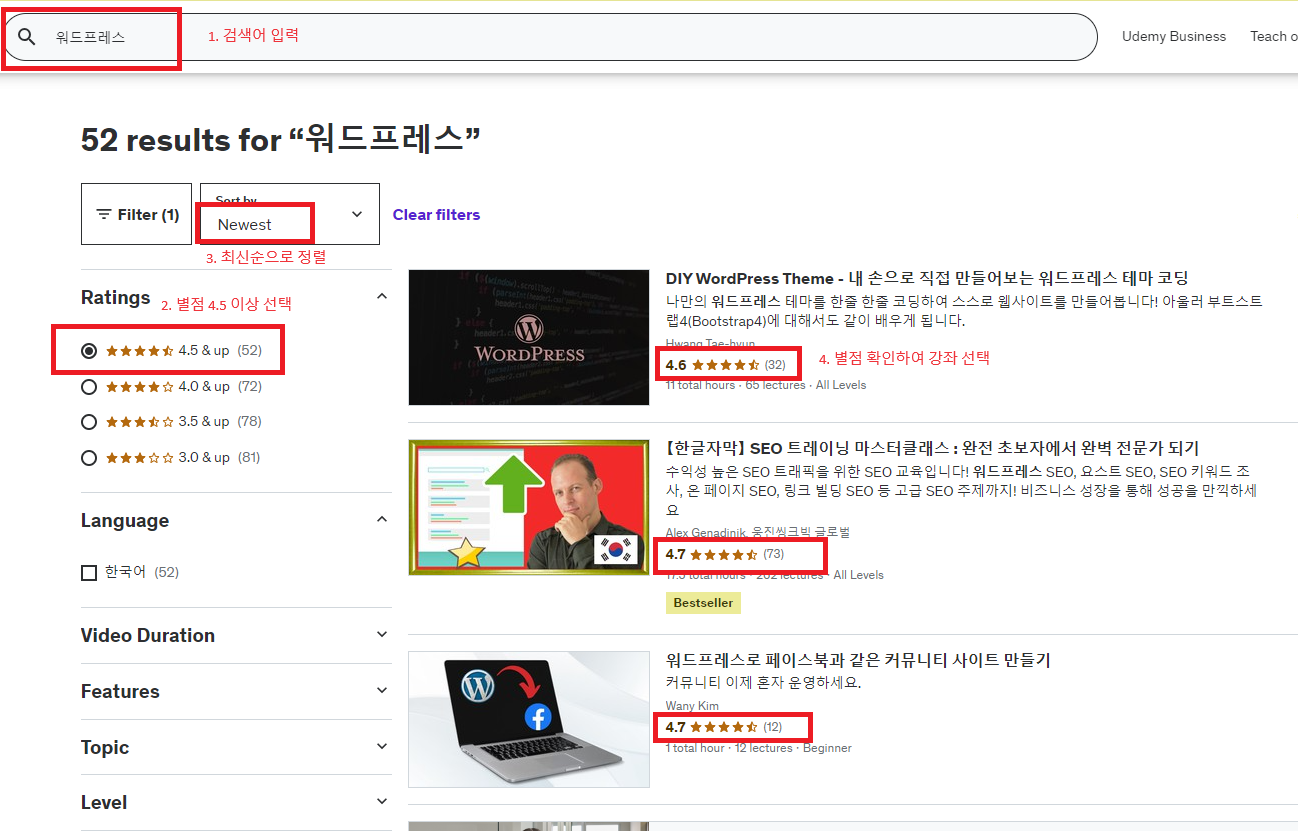 3. 필터된 목록중 최신 강좌 순으로 정렬