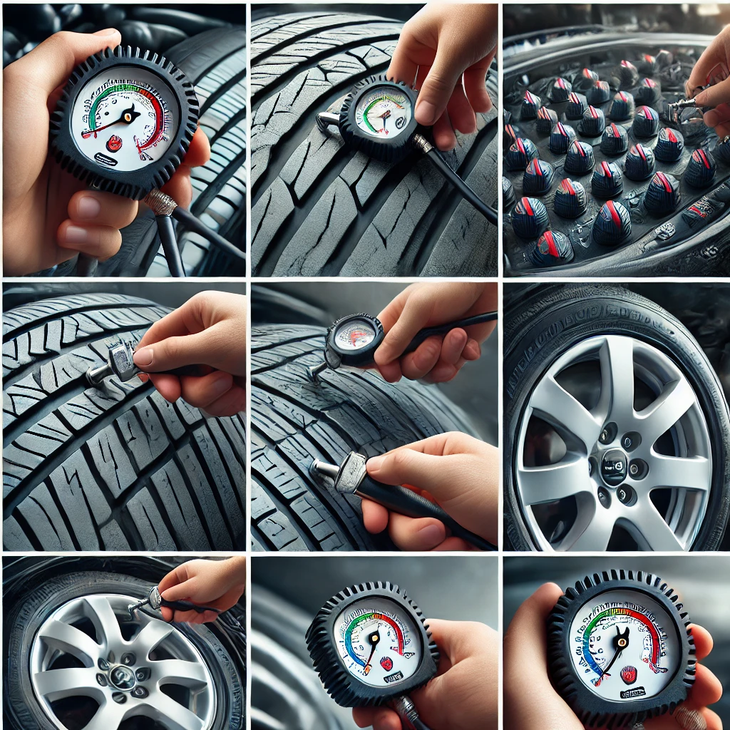타이어 게이지 사용: 타이어 공기압을 측정할 때는 정확한 게이지를 사용해야 합니다. 요즘에는 디지털 게이지가 많이 사용되며 편리하게 공기압을 측정할 수 있습니다.