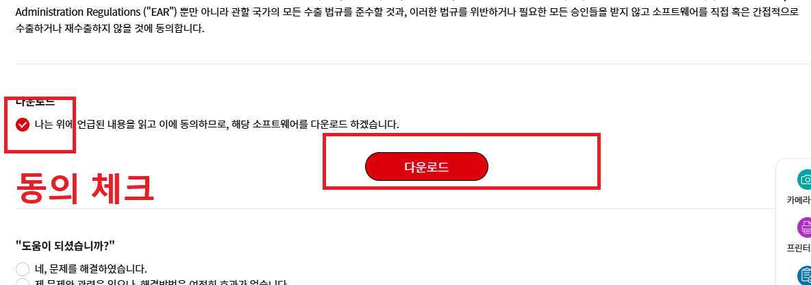 웹사이트 상단 메뉴에서 '다운로드 & 지원'을 클릭합니다.